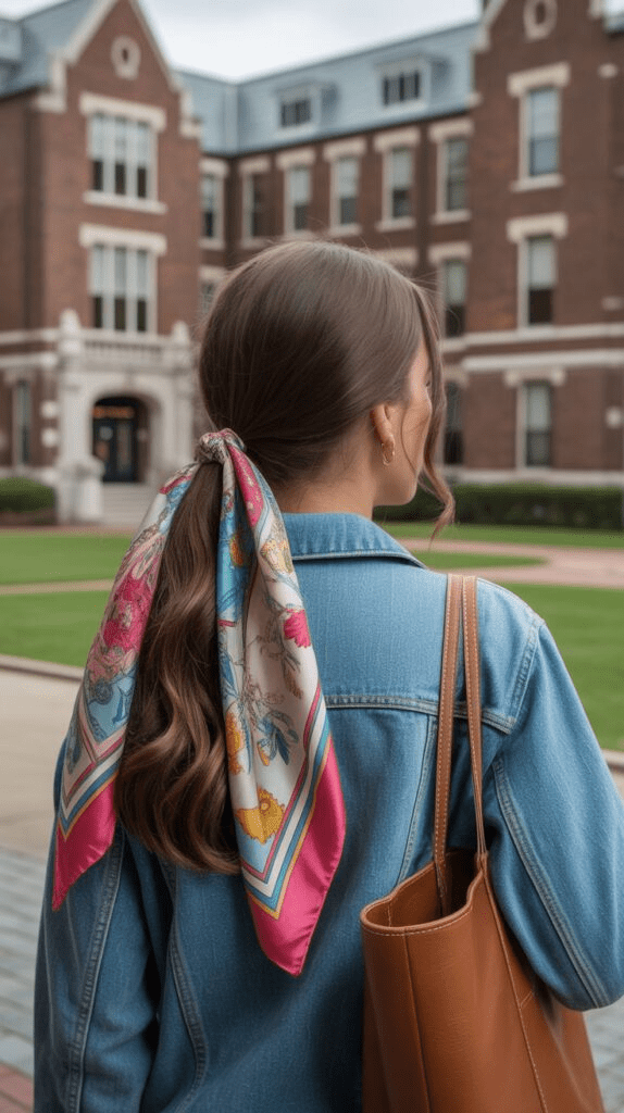 Accessories are the secret weapon of any style enthusiast, and a simple silk or cotton scarf can transform a basic ponytail into a work of art. This look injects personality, color, and a touch of vintage flair into your hairstyle. It’s an amazing way to coordinate your hair with your outfit or show off school spirit with a scarf in your school’s colors. This is interior design for your hair—using a statement piece to define the space.