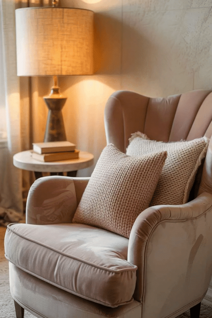 Every mature woman needs a dedicated space for unwinding, and this reading corner exemplifies perfect female room decor priorities.The oversized armchair invites you to settle in with a good book or morning coffee.What strikes me most is how the muted color scheme creates sophistication without sacrificing comfort.This setup proves that adult women’s bedrooms should include spaces for activities beyond sleep.