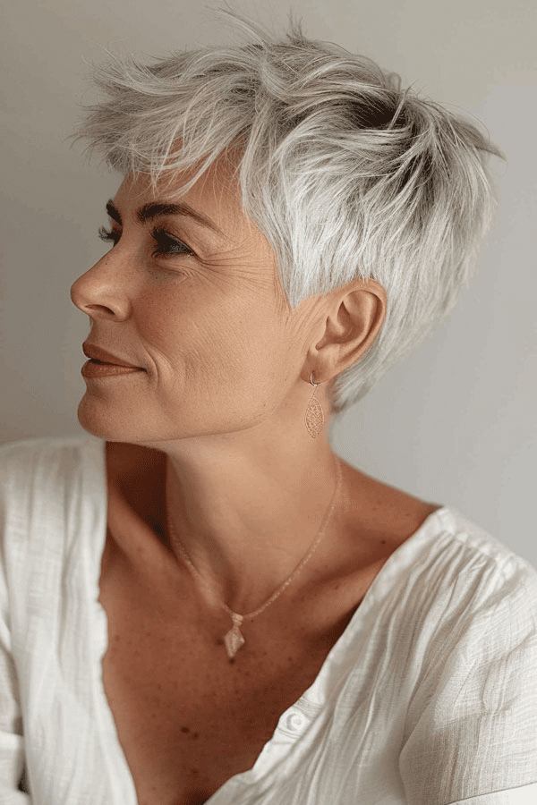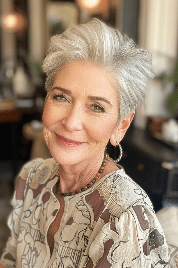 Hey there! Ready to switch up your look with something fresh and fun? The pixie cut, versatile and elegant, can be customized to flatter every face shape and hair texture, offering a rejuvenating and low-maintenance style solution. Scroll down through our list of 23 super chic pixie cuts perfect for women over 60. Whether you’re in the mood to shake things up a bit or just want a style that’s easy to manage but still packs a punch, these pixie cuts are here to keep you looking fabulous. From sleek and smooth to playful and textured, there’s a little something for everyone. Let’s find that perfect pixie haircuts for women over 60 that lets your personality shine through!