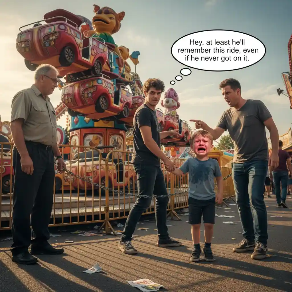 Kid: *Sniffling.* “Dad, I wanna go on! I wanna go on!”