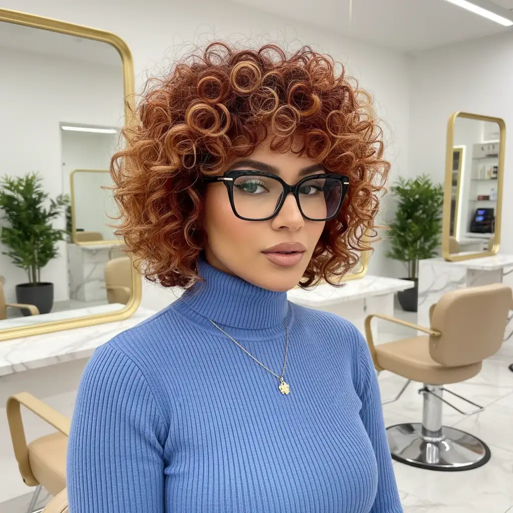 18. Copper Curly Hair with Textured Layers