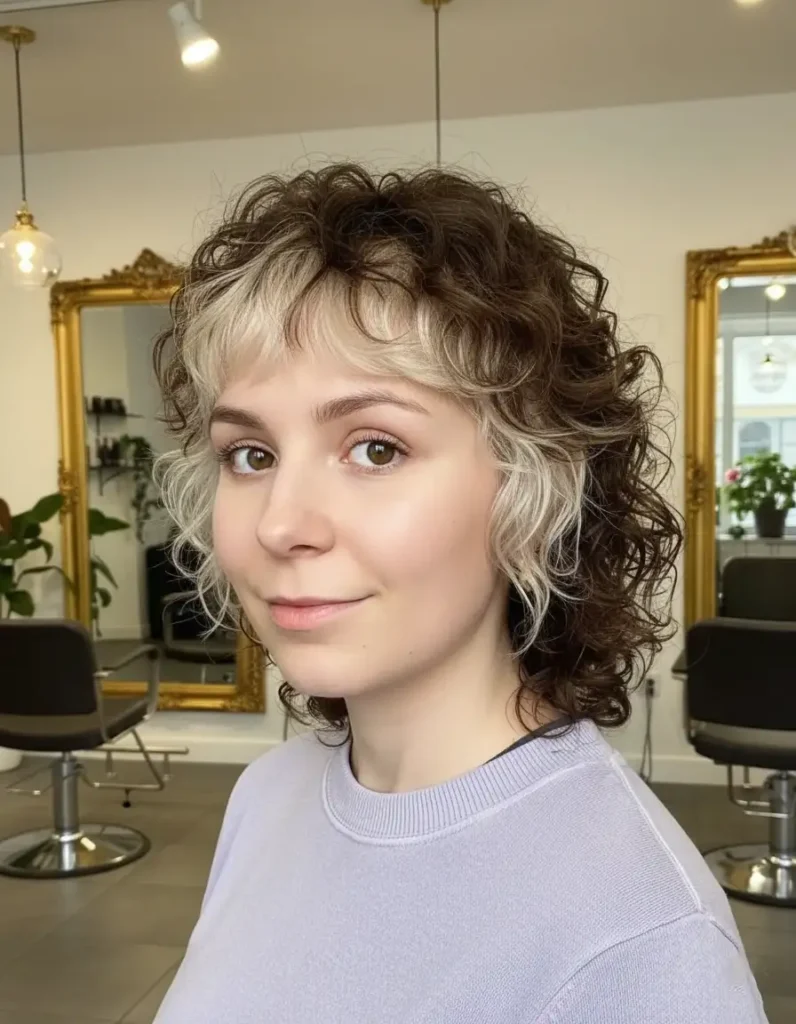 15. Mullet Shag with 70s Curly Bangs