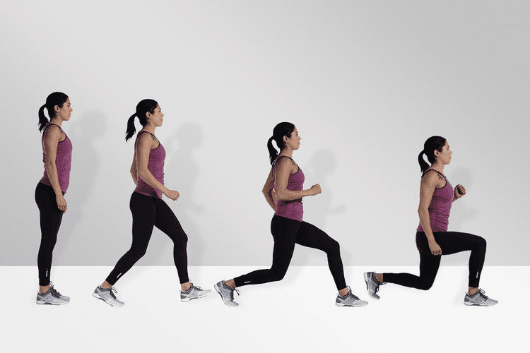 – Tip: Keep your weight in your heels as you lunge to protect your knees.