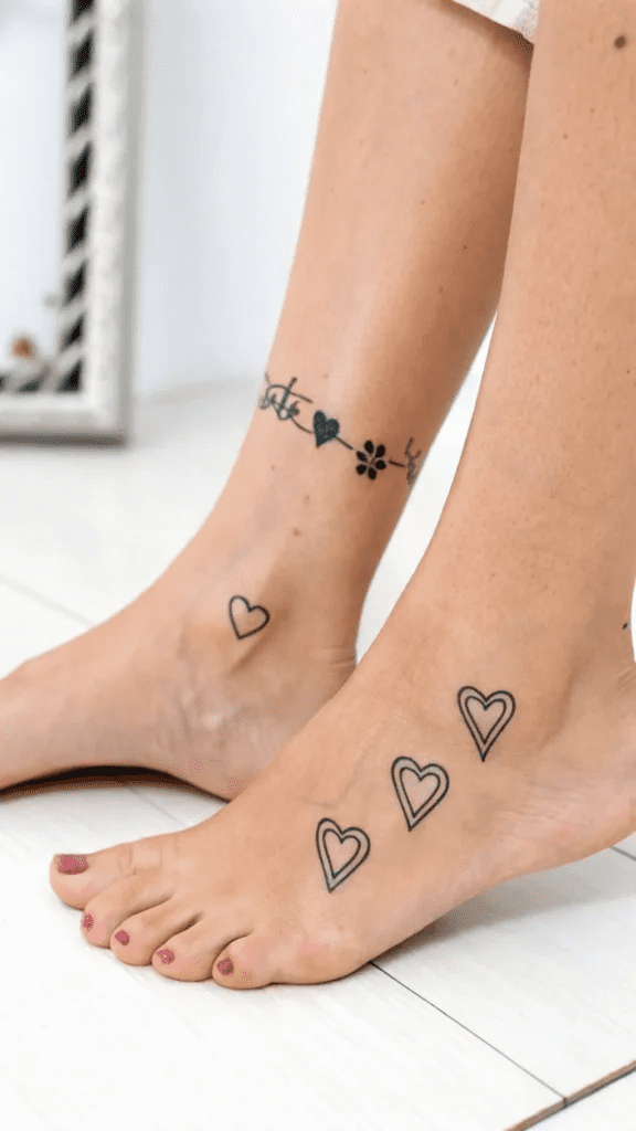 A delicate heart adorning your ankle can be a beautiful, eye-catching statement piece that adds a touch of elegance to your overall aesthetic.