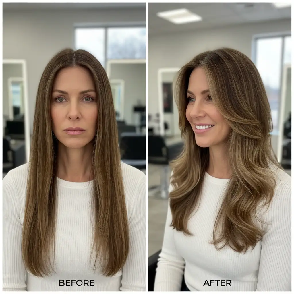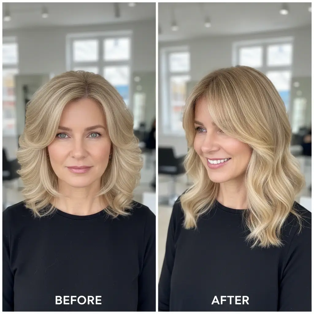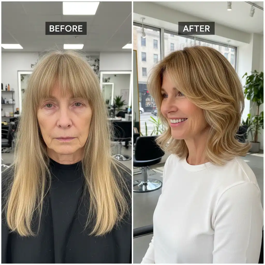 Hair that doesn’t move — stiff, sprayed, or overly styled — rarely looks youthful.