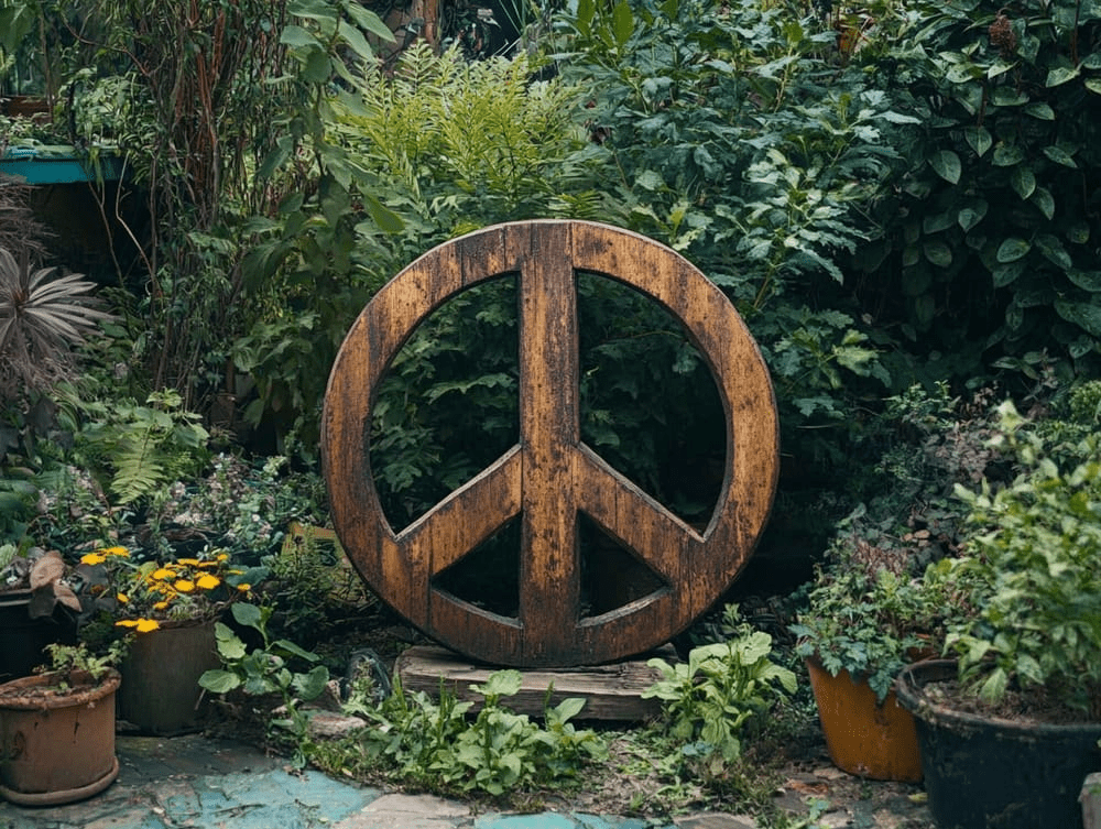 Create or purchase a peace sign made from natural materials like reclaimed wood, stones, or even flowering vines. Place it at the entrance or in the center of your garden to symbolize harmony. Consider decorating the peace sign with seasonal flowers or colorful ribbons to keep it vibrant and evolving throughout the year.