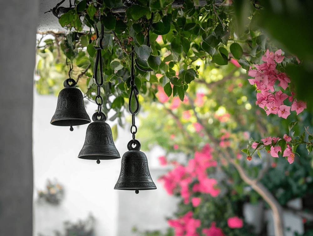 wind chimes and bells in strategic spots to create a soft, soothing melody as the wind blows. These elements enhance the sensory experience, making the garden feel like a place of sanctuary. Use chimes made from bamboo, shells, or recycled metal to add character.The Ancient Graffiti Pine Cone Wind Chimes are the best option to go for as they bring the best of both worlds.