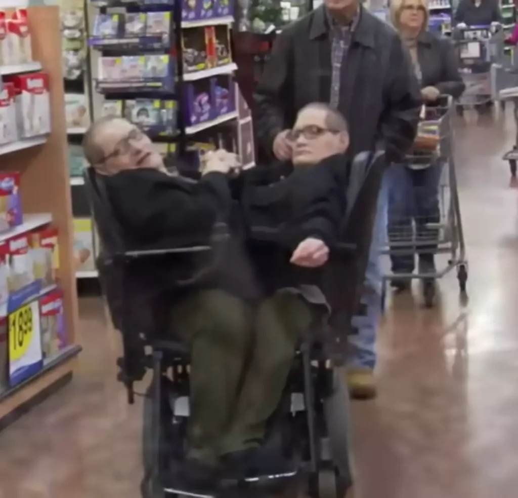 The twins managed to get around in a specially made wheelchair (YouTube/@insideedition)