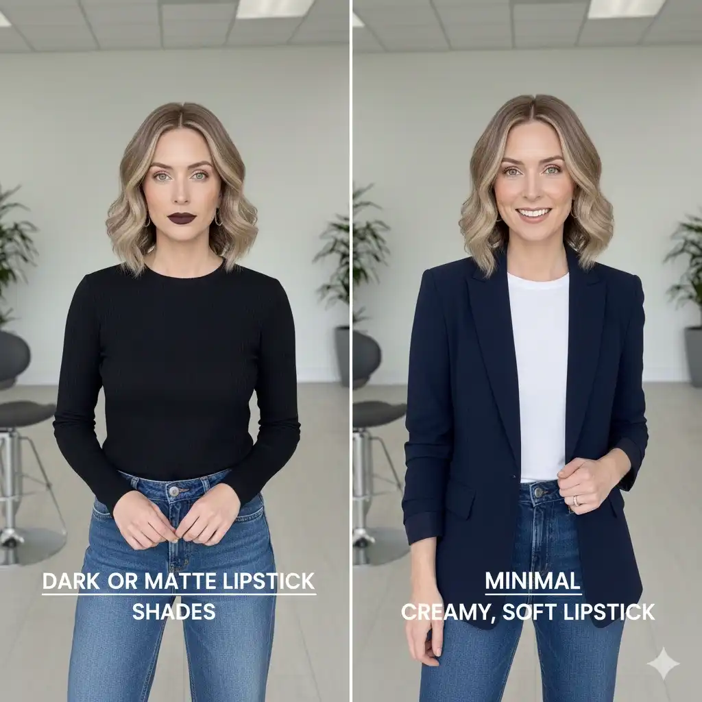 Deep plum, brown, or gray-toned lipsticks can make lips look thinner and dry.