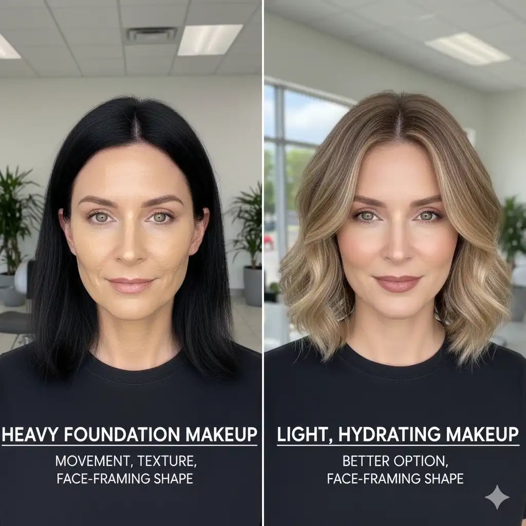 Instead of smoothing the skin, heavy makeup often emphasizes texture, dryness, and fine lines, especially around the eyes and mouth.