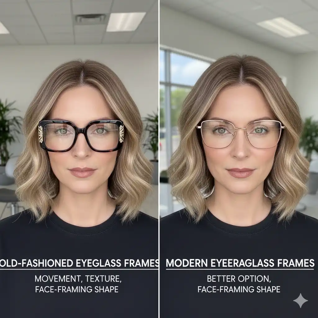 Thick, heavy, or overly decorative frames can instantly add years and pull attention away from your eyes.