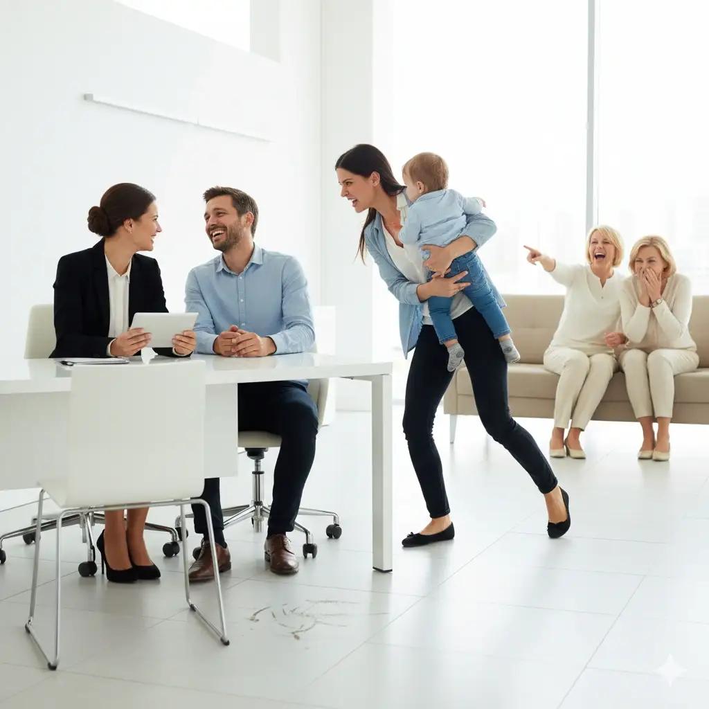 She reluctantly trailed back with the toddler but stands as close as she can and watches me like a hawk. Two other ladies in the waiting room have seen the whole thing.