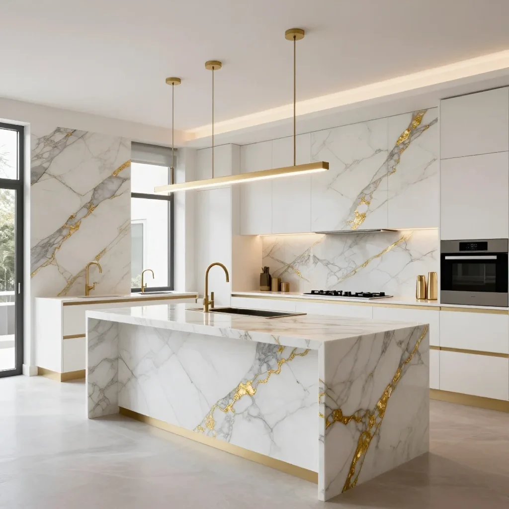 2. Calacatta Marble With Plum & Gold Veining