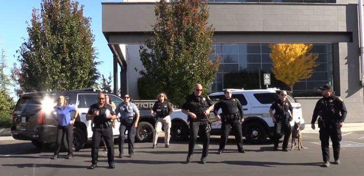 As the music plays, the officers get into the routine, but they aren’t the only ones performing a dance routine. The police dog is also at the dance off. Be sure to keep your eyes on the police dog while you watch this epic dance battle that all started because of a parking spot.