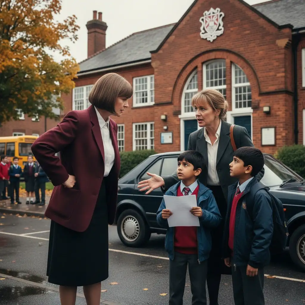 When I was walking to the car with my best friend and his mother, the headmistress appeared with a stern look on her face. For reasons I never fully understood, this woman took a dislike to me and would frequently tell me off or single me out for things. She was already glaring and wagging her finger at me.